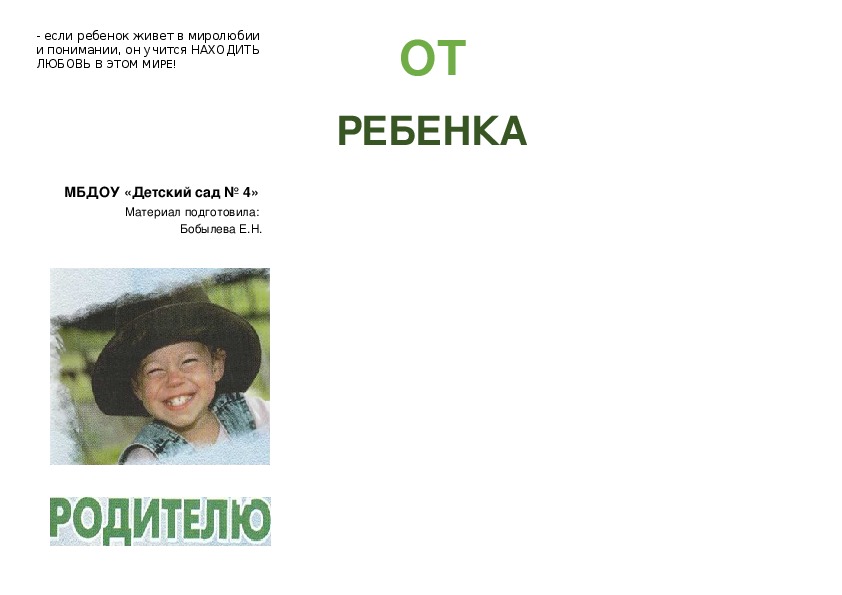 учится ЦЕНИТЬ СЕБЯ.- если ребенок живет в миролюбии