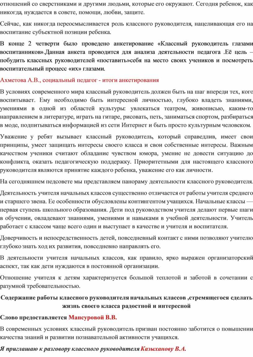 На сегодняшнем педсовете мы представляем панораму деятельности классного руководителя.