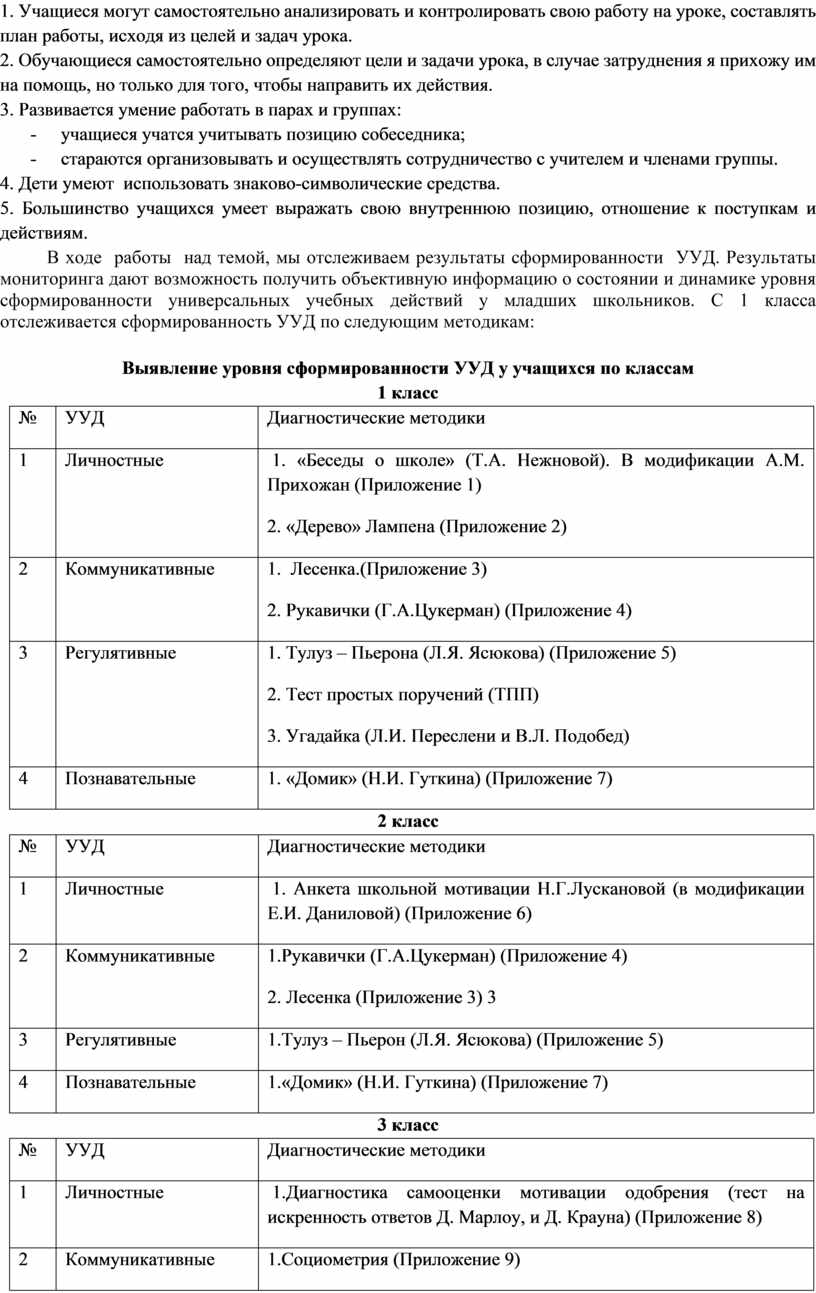 Мониторинг применения УУД на уроке по результатам анализа урока. |