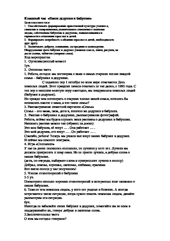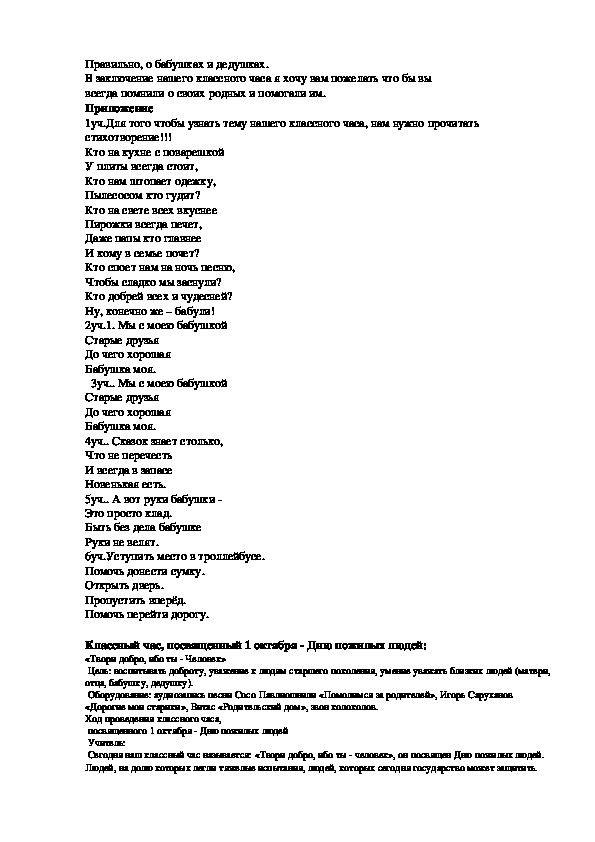1 .Познакомить учащихся с традициями и обычаями общения различных поколений.