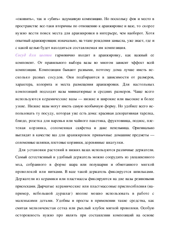 сосудах занимает 3/4 объема. При этом листья веток деревьев и кустарников,