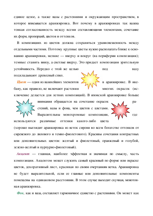 ванию аранжировки, мелкие — вверху и вокруг (на периферии композиции);