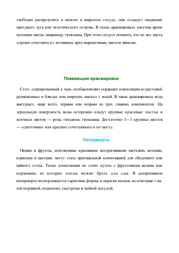 компонента, в качестве которых могут выступать ветки, цветы, листья и другойрастительный и нерастительный материал. Концы этих элементов должны
