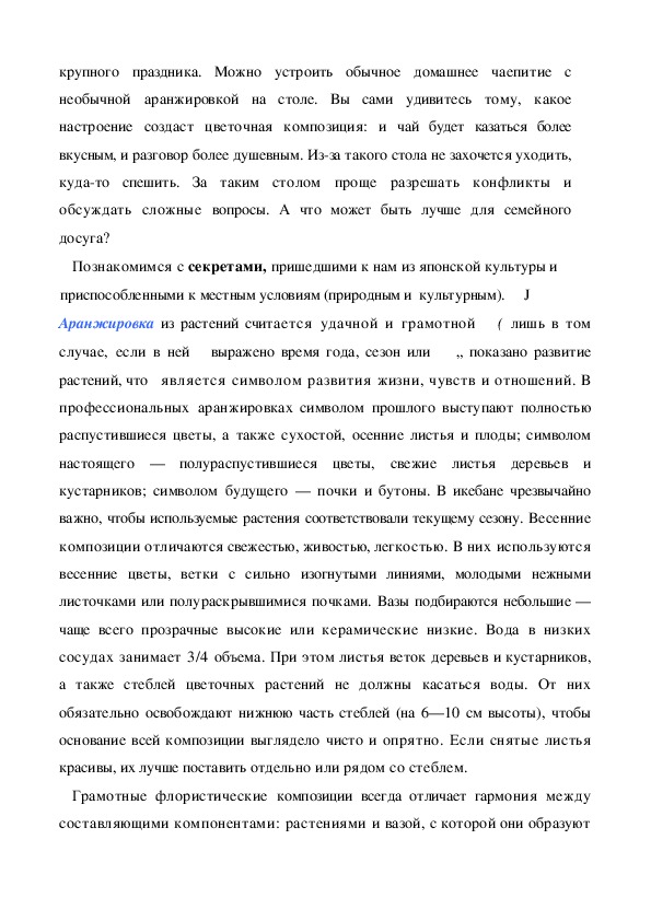 дворянской культуре (не типичное для японцев). Для букетов из цветущей