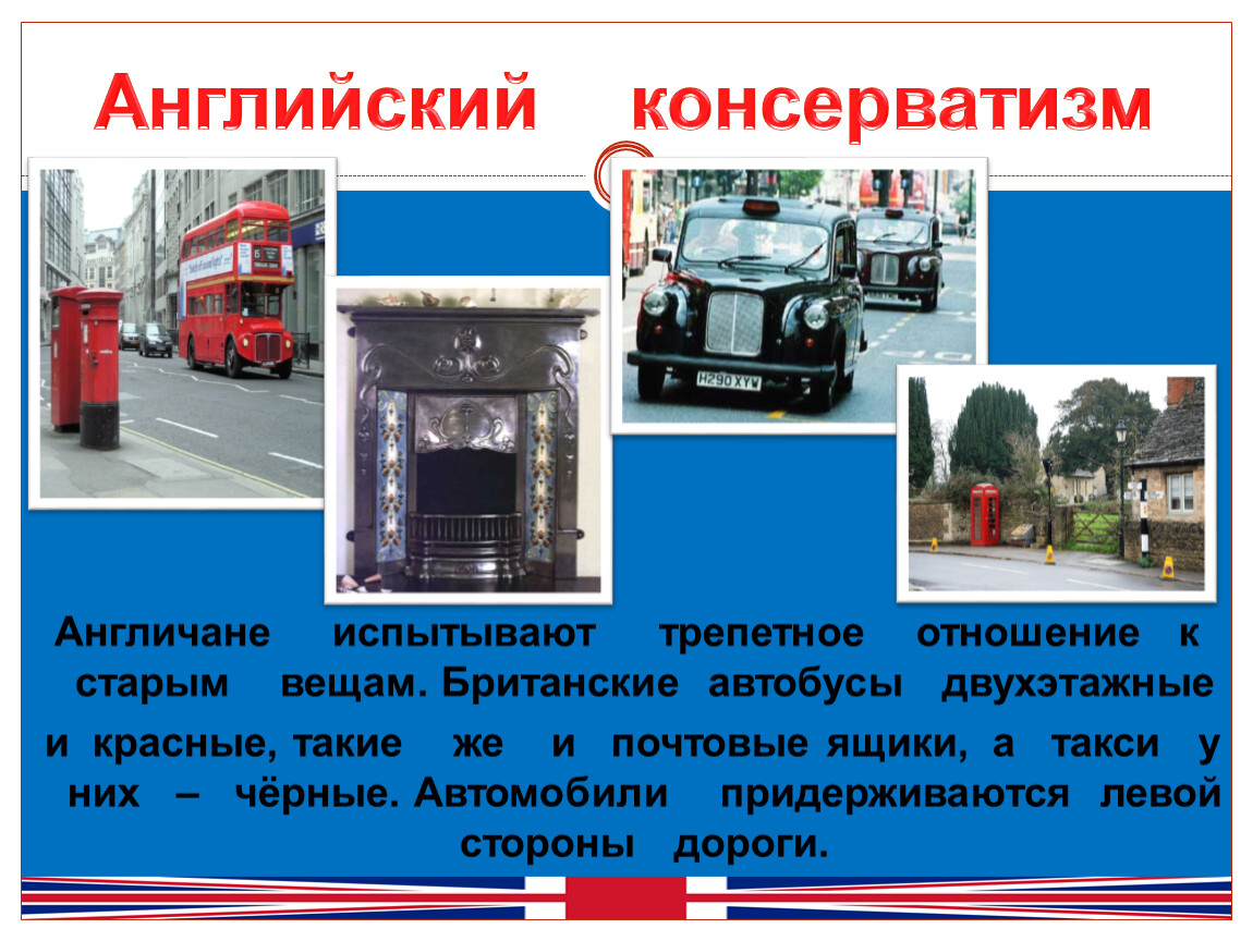 и красные, такие же и почтовые ящики, а такси у них – чёрные. Автомобили придерживаются левой стороны дороги.