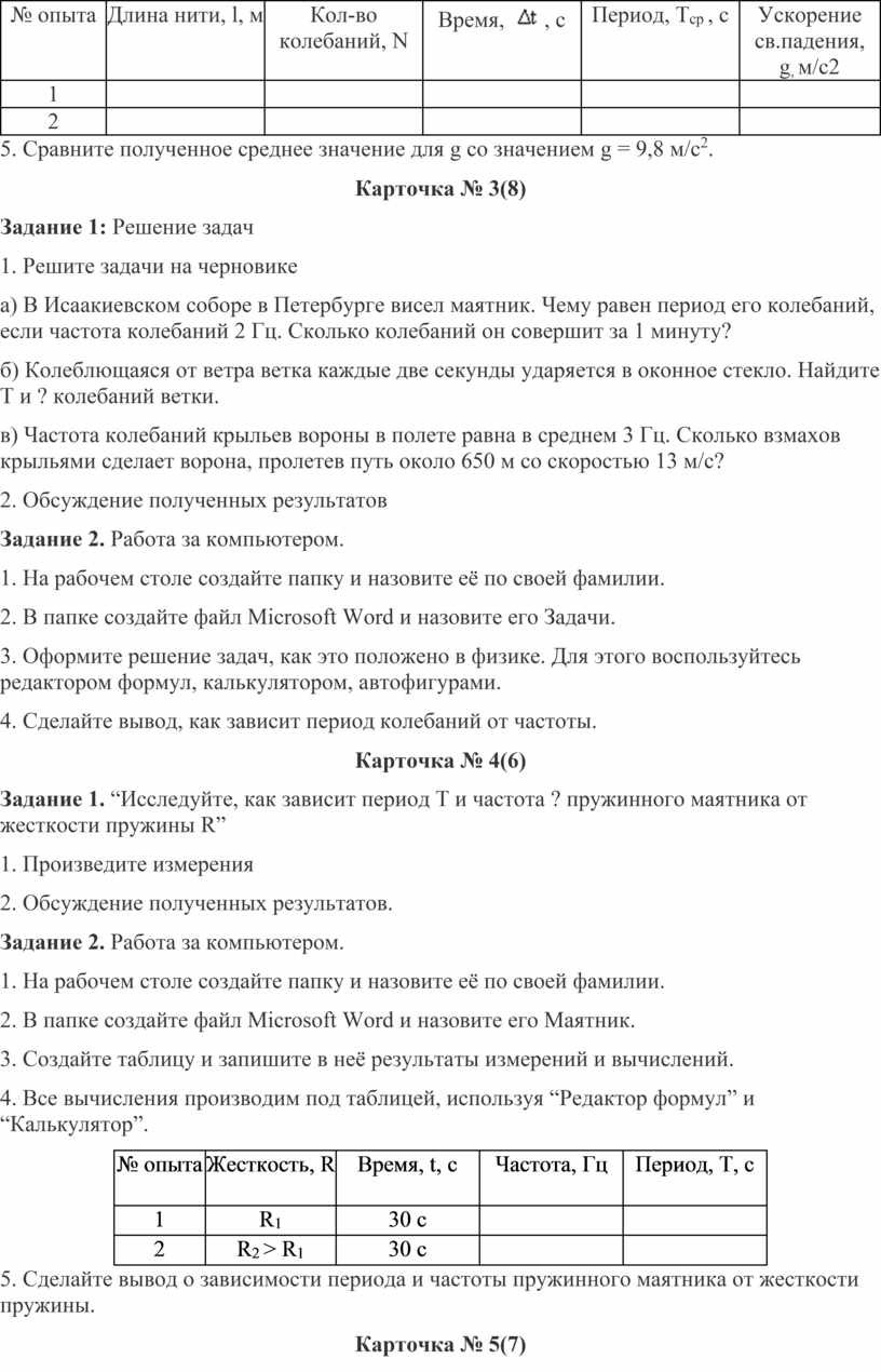 Задание по информатике: Вам необходимо оформить выполненные работы в виде текстового документа, используя при необходимости умение, вставлять таблицу или использовать редактор формул. Задание № 2 в карточках.
