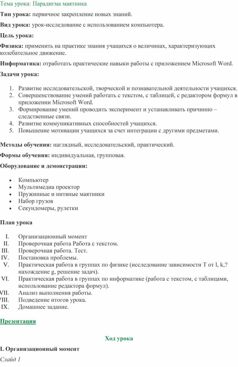 Информатика: отработать практические навыки работы с приложением Microsoft Word.