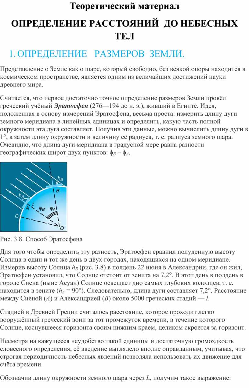 1. ОПРЕДЕЛЕНИЕ РАЗМЕРОВ ЗЕМЛИ.