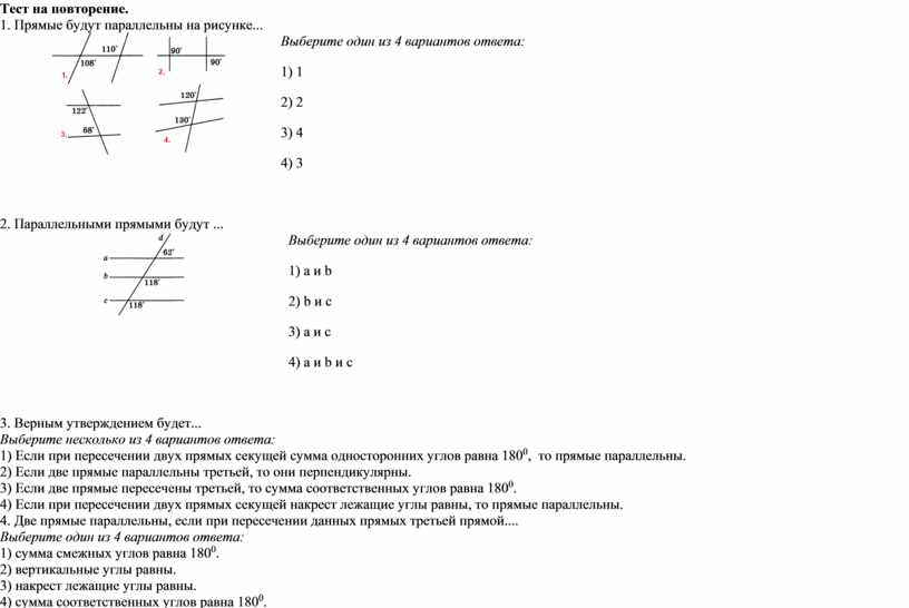 4. Две прямые параллельны, если при пересечении данных прямых третьей прямой....