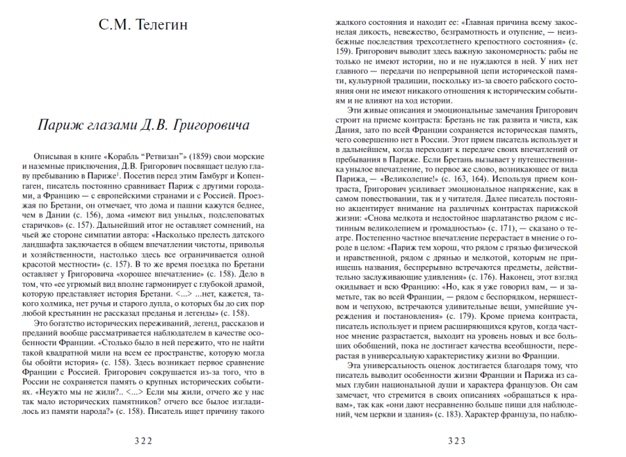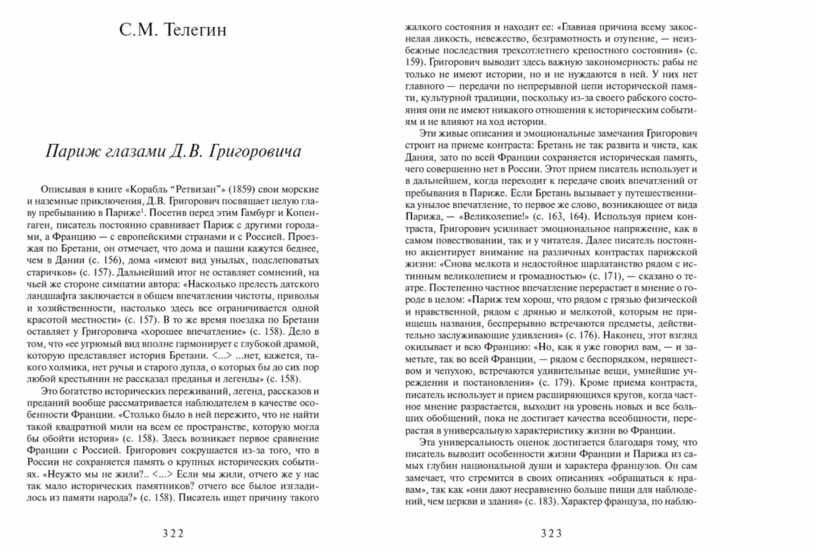 в статье анализируется описание жизни Парижа, сделанное Григоровичем в книге "Корабль Ретвизан"