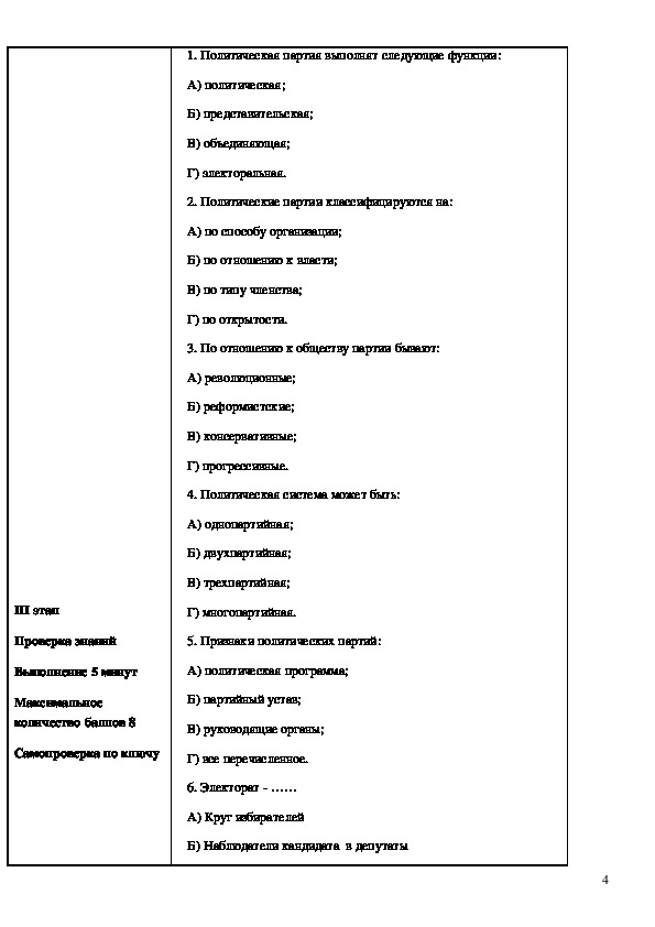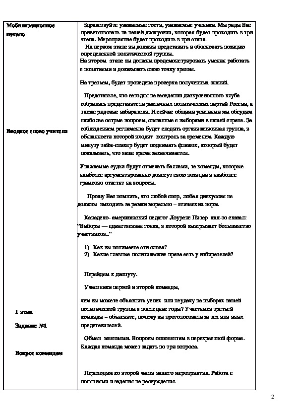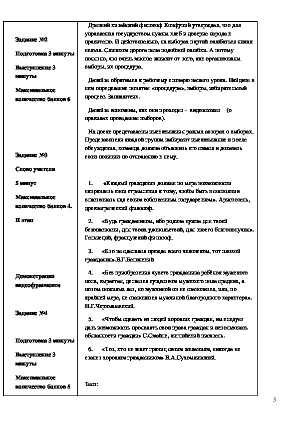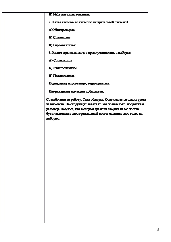 1) сформировать у учащихся представление о выборах как ведущей формы демократии;