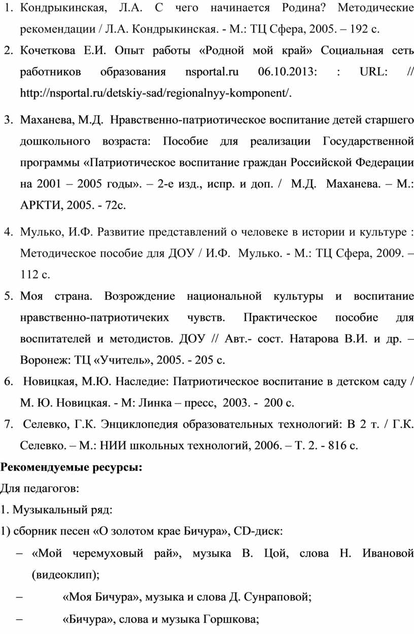 12. Новицкая, М.Ю. Наследие: Патриотическое воспитание в детском саду / М. Ю. Новицкая. - М: Линка – пресс, 2003. - 200 с.