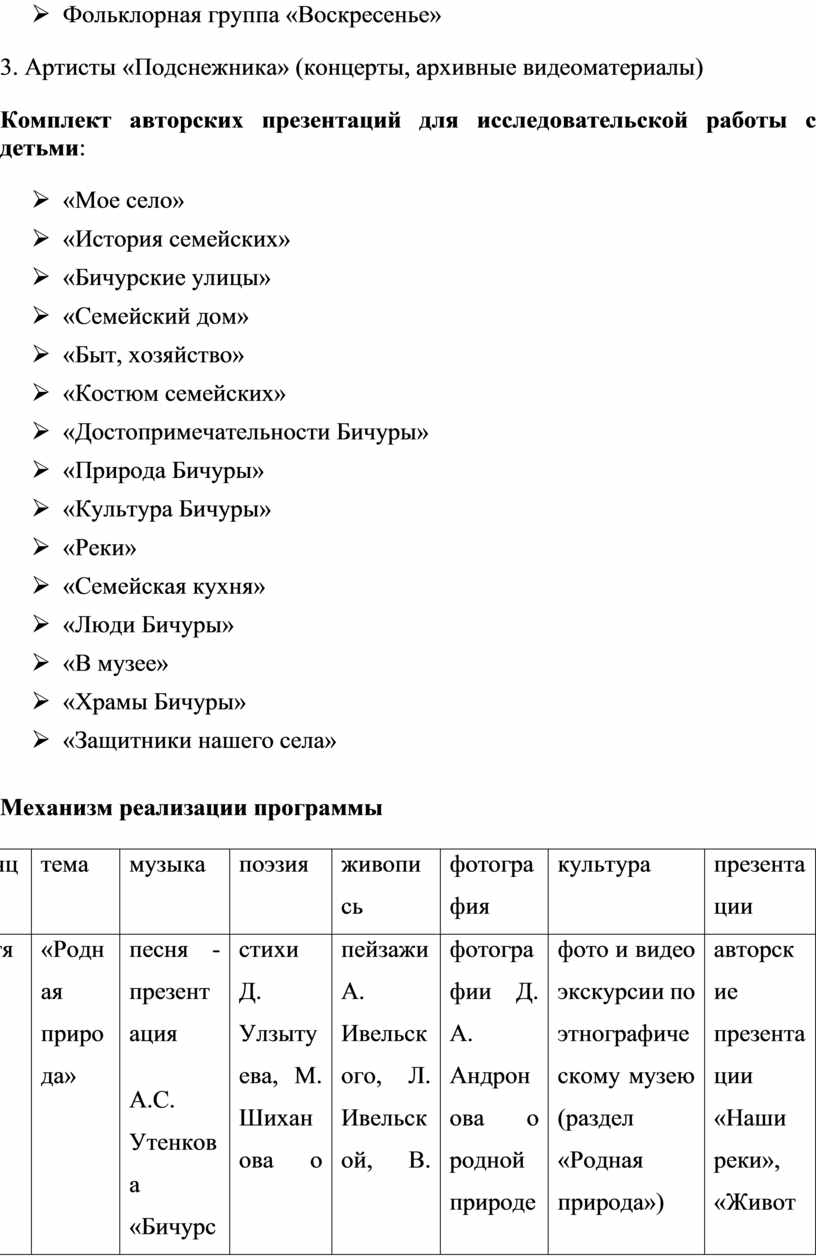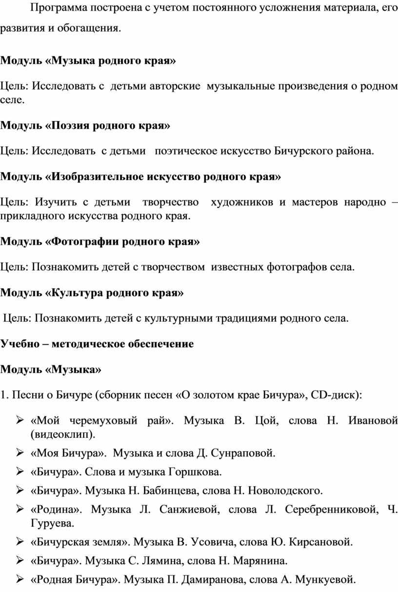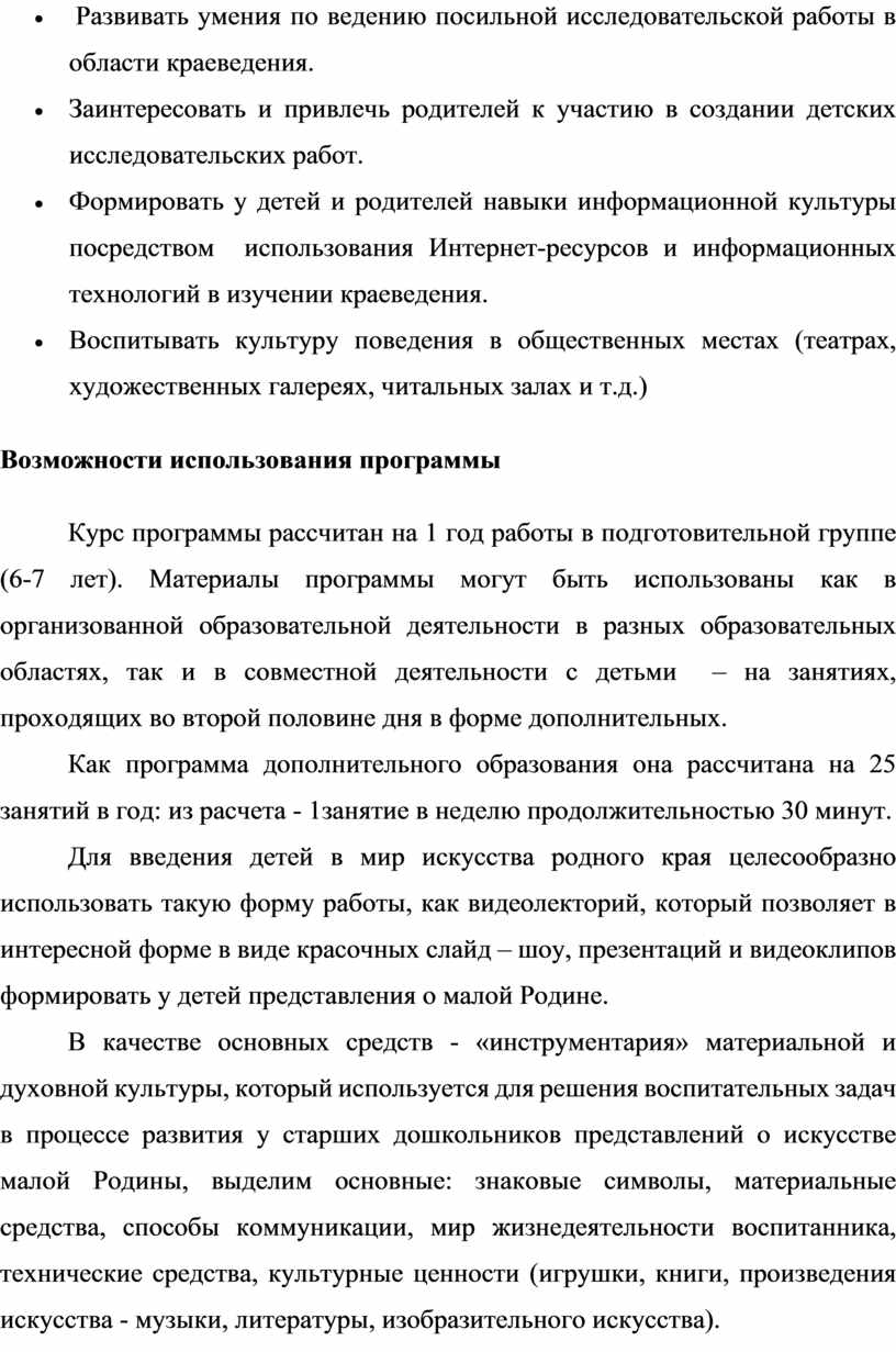 В процессе освоения программы необходимо раскрыть уникальность историко-культурного наследия родного села, подчеркнуть его роль в духовном развитии человека, показать, что культура села является частичкой культуры России в целом.