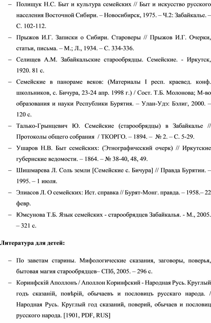 3) Элиасов Л.Е. Народная поэзия семейских. – Улан-Удэ, 1963.