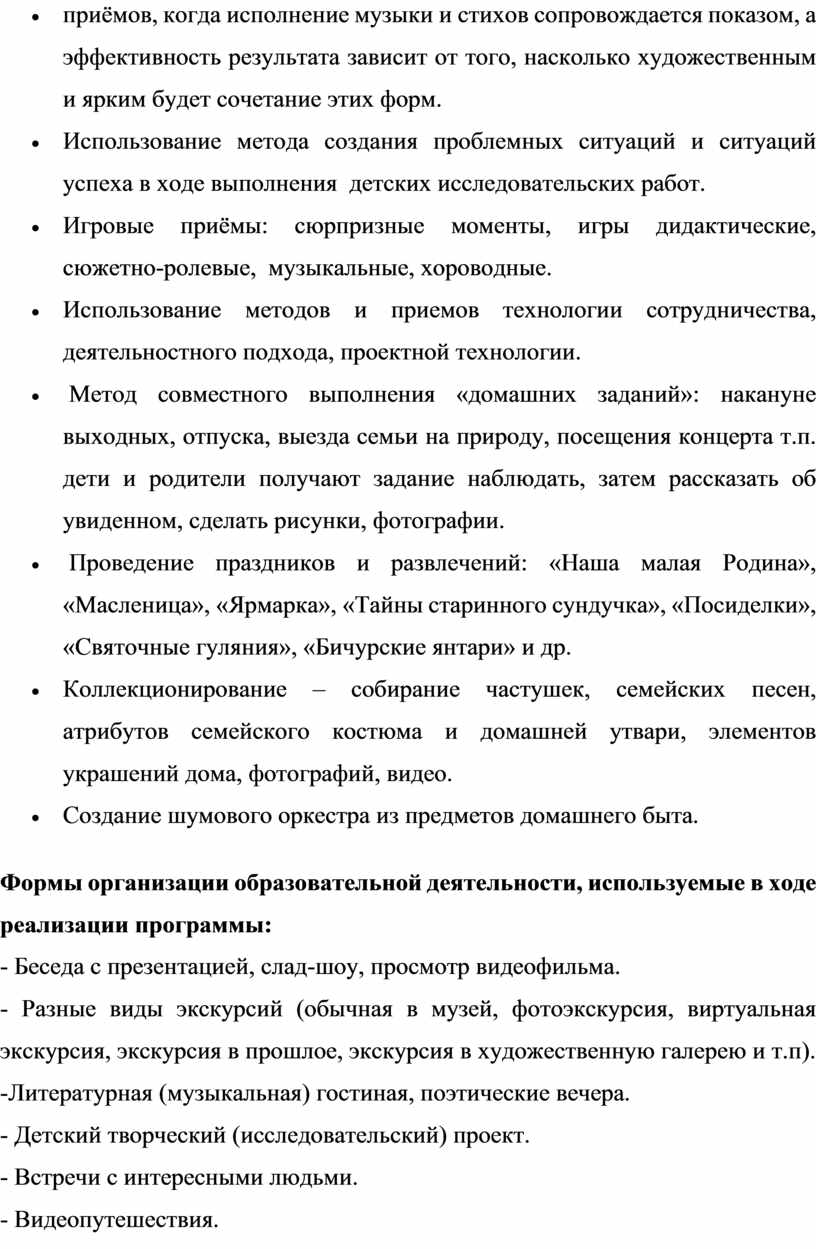 В работе по программе рекомендуется использовать следующие методы и приемы: