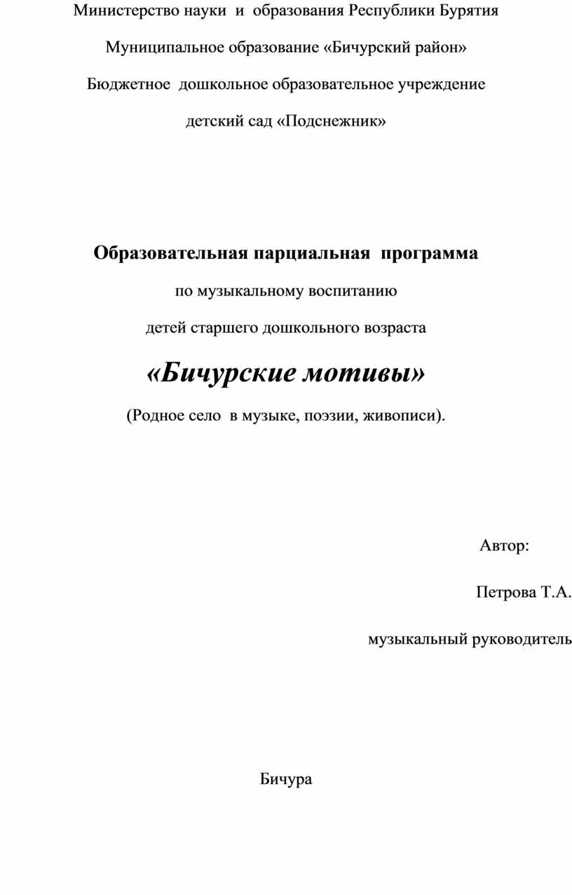 - «Моя Бичура», музыка и слова Д. Сунраповой;