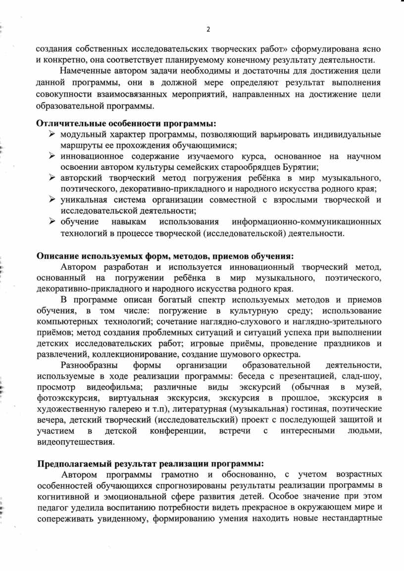 Новизна программы основана на актуализации и авторской интерпретации культурологического подхода в воспитании дошкольников, применении инновационного авторского метода, основанного на погружении ребёнка в мир музыкального, поэтического, декоративно-прикладного и народного искусства родного края.