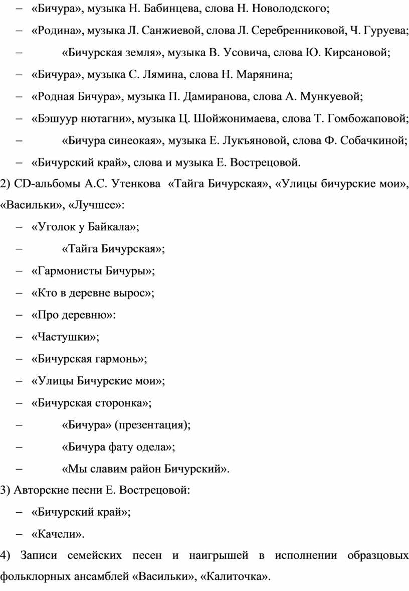 2) CD-альбомы А.С. Утенкова «Тайга Бичурская», «Улицы бичурские мои», «Васильки», «Лучшее»: