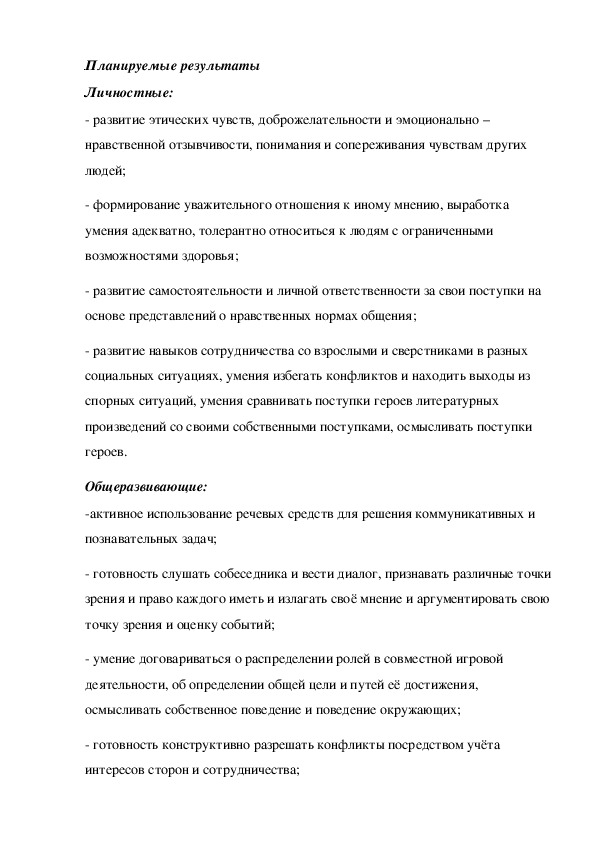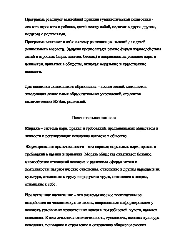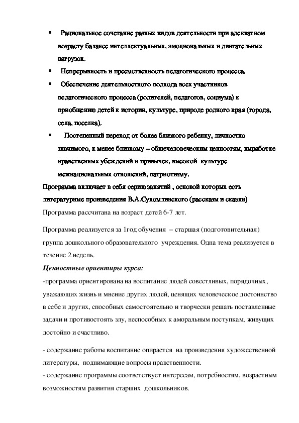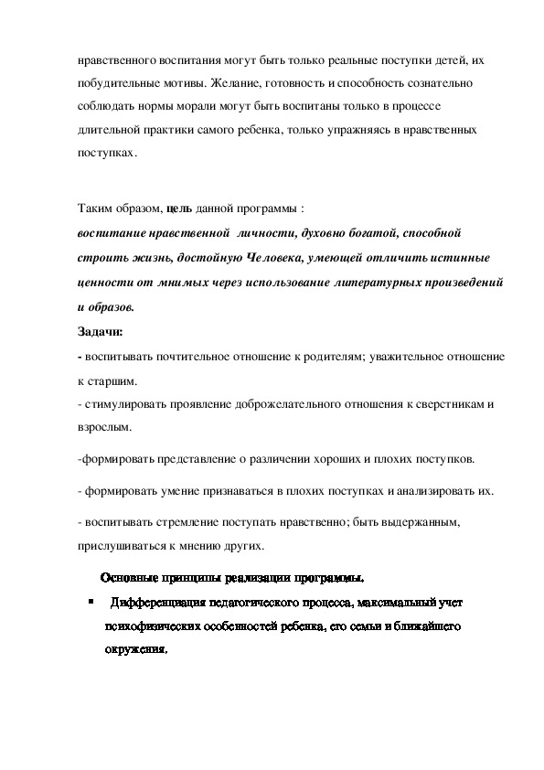 семье, Родине.Программа реализует важнейший принцип гуманистической педагогики