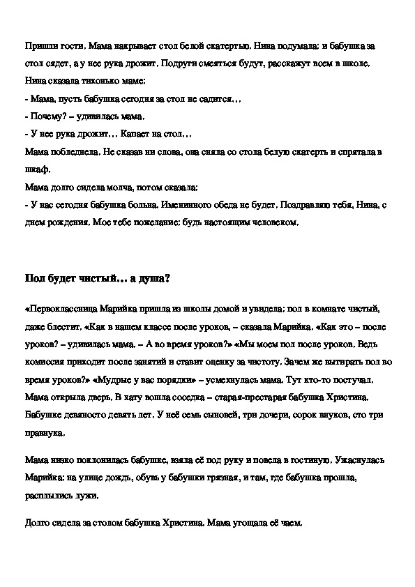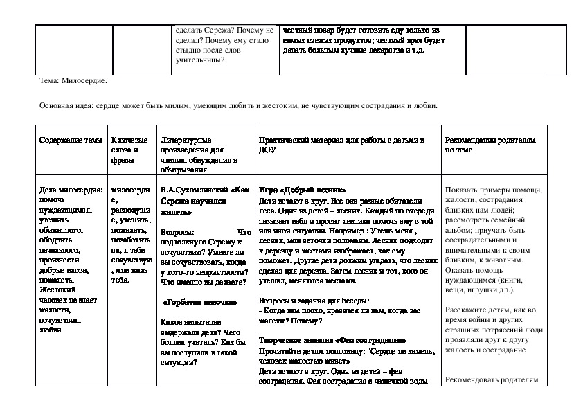 как доброжелательность, милосердие, уважение к старшим, любовь к матери,