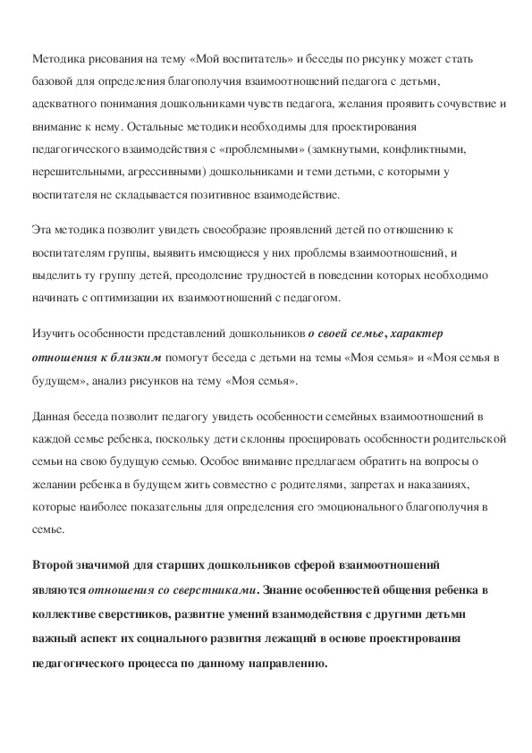 Данная беседа позволит педагогу увидеть особенности семейных взаимоотношений в