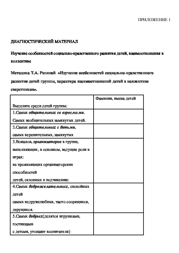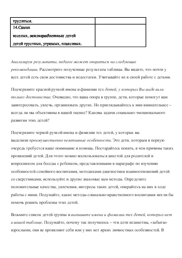 Положение ребенка среди сверстников, социальный статус в группе, типичная