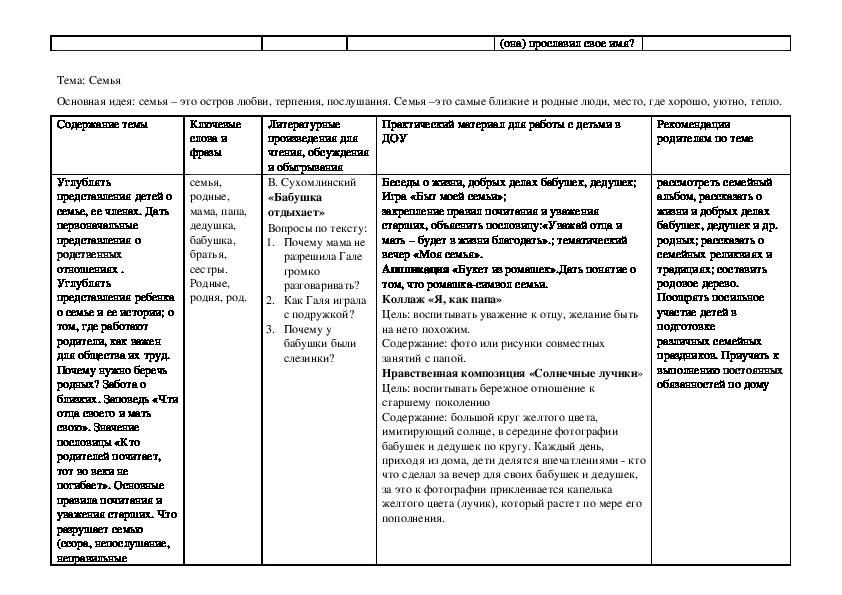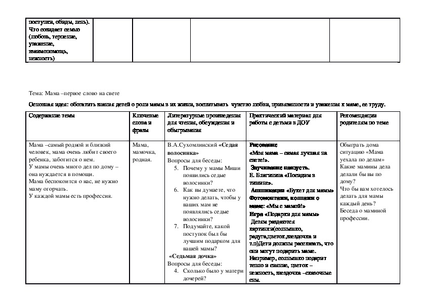 отношения к близким помогут беседа с детьми на темы «Моя семья» и «Моя семья в