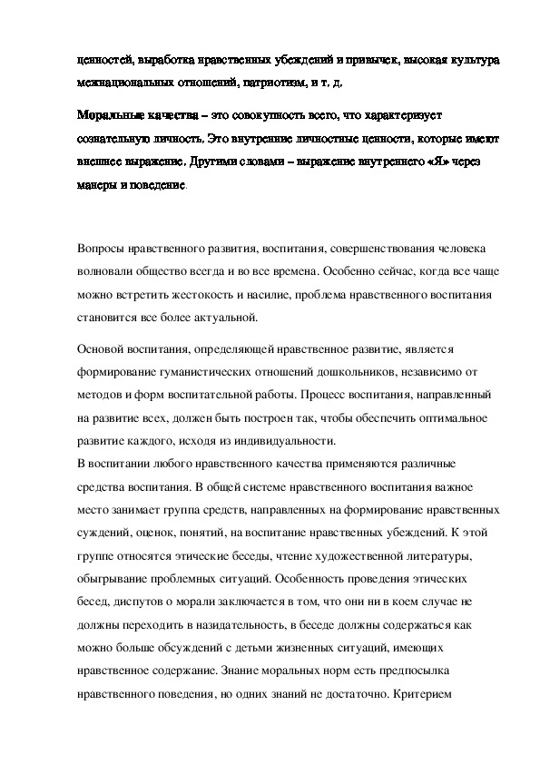 морали, формирование у детей старшего дошкольного возраста таких качеств,