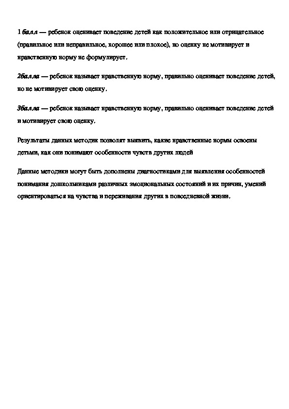 Результаты данных методик позволят выявить, какие нравственные нормы освоены