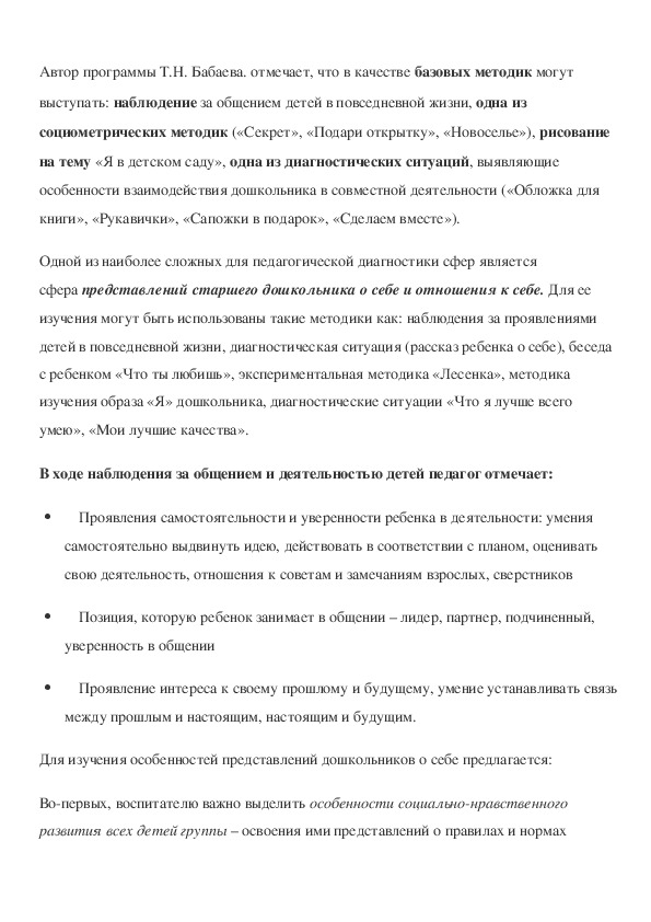 педагогического процесса по данному направлению.Автор программы Т.Н. Бабаева. отмечает, что в качестве базовых методик могут