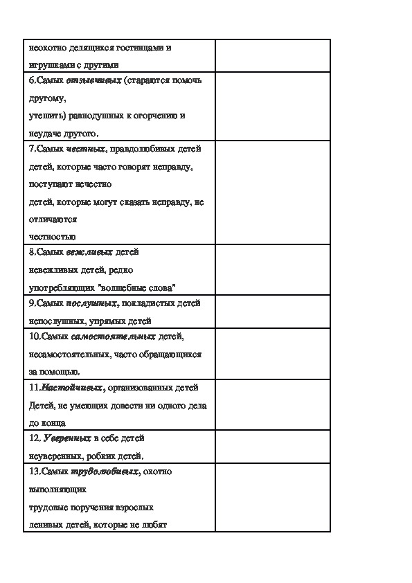нерешительными, агрессивными) дошкольниками и теми детьми, с которыми у