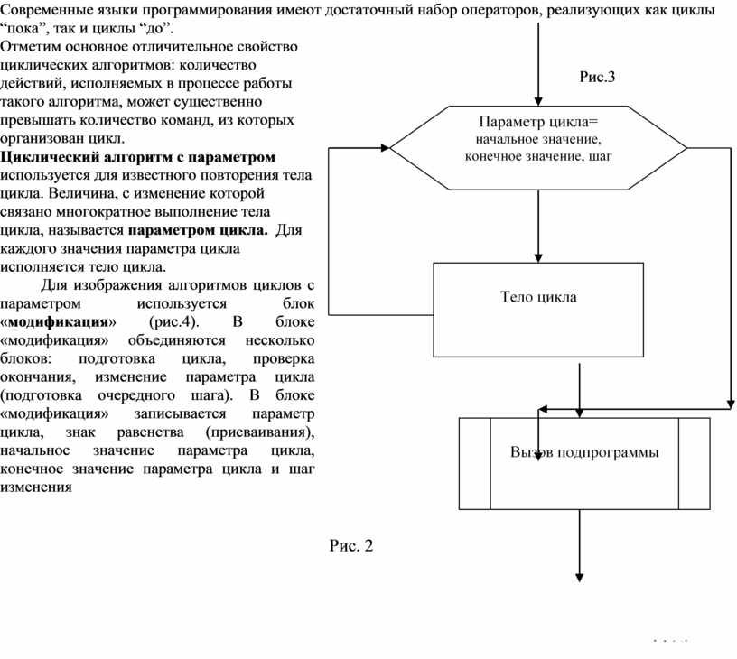 окончания, изменение параметра цикла (подготовка очередного шага). В блоке