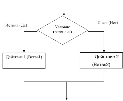На практике редко удается представить схему алгоритма решения задачи в виде линейной структуры. Часто в зависимости от каких-либо значений промежуточных результатов необходимо организовать вычисление либо по одним, либо по другим формулам.