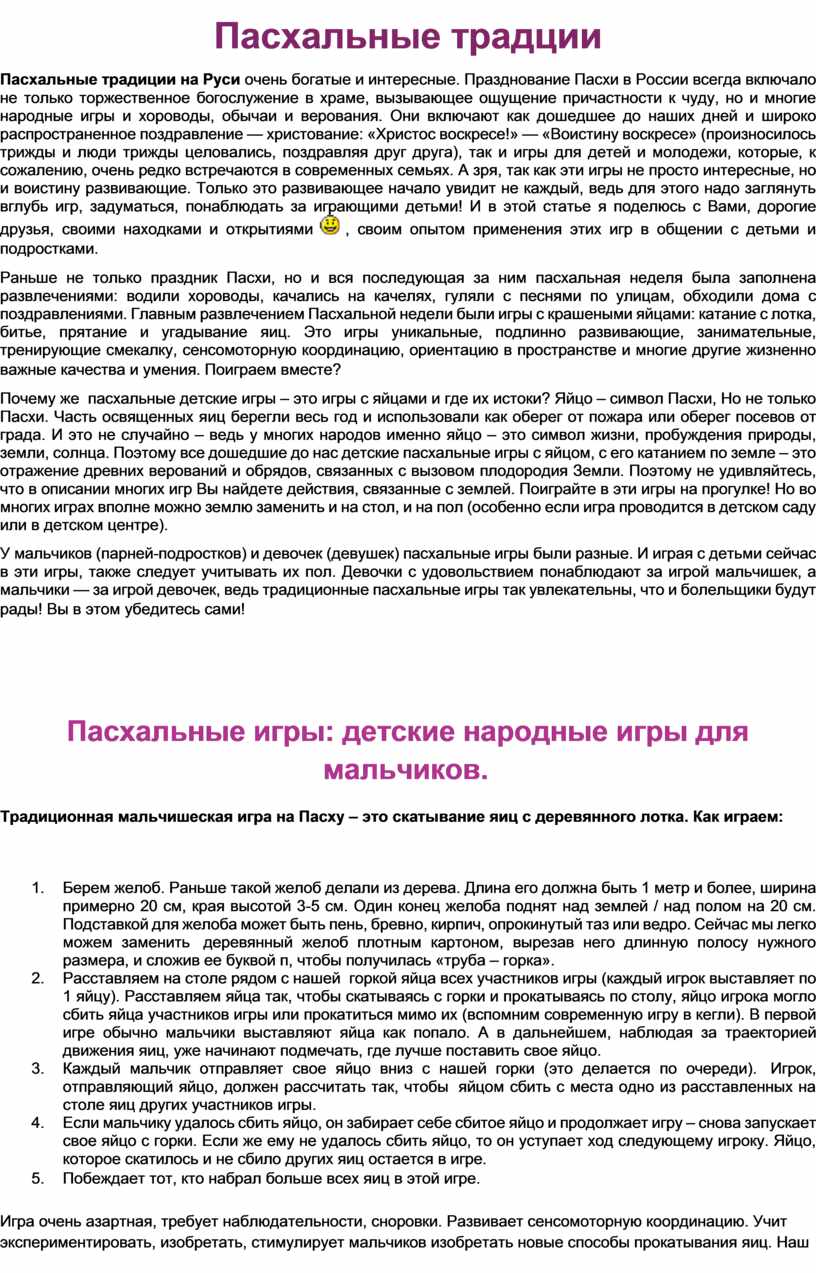 А сейчас расскажу еще о нескольких очень интересных русских народных пасхальных играх.