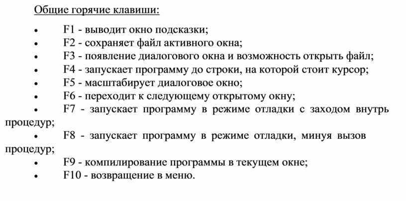 · F4 - запускает программу до строки, на которой стоит курсор;