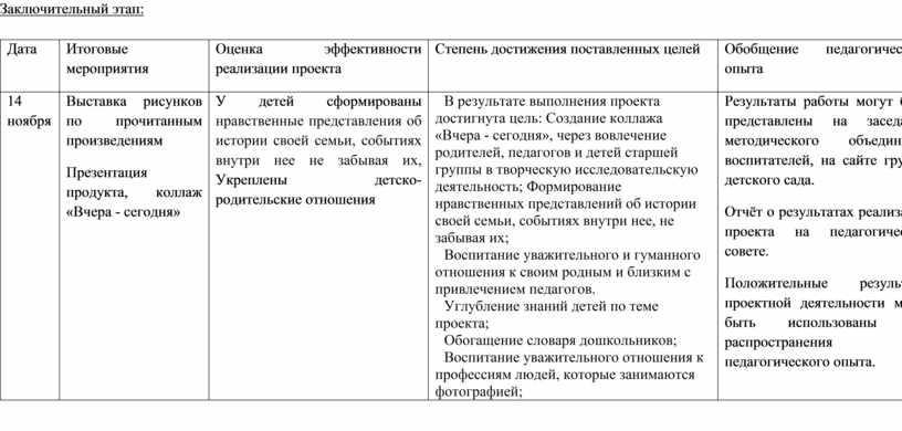 У детей сформированы нравственные представления об истории своей семьи, событиях внутри нее не забывая их, Укреплены детско-родительские отношения |