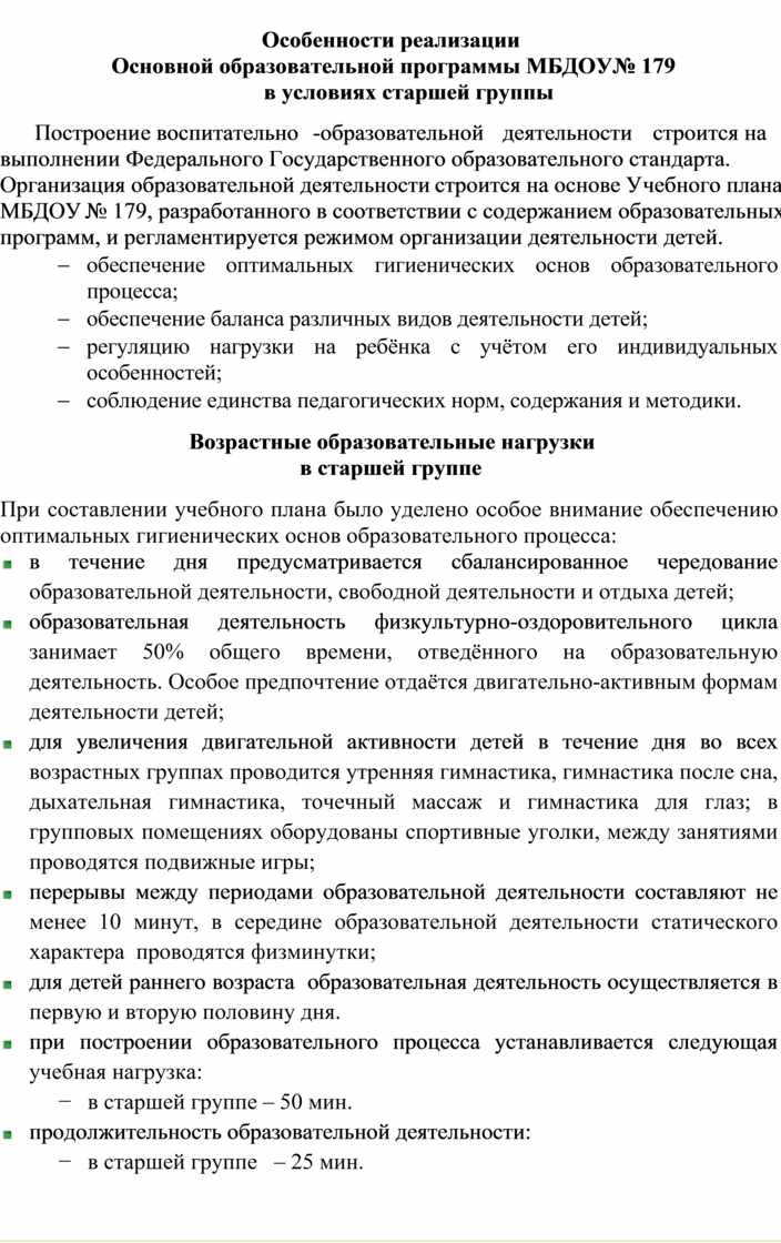 Воспитательно-образовательный процесс в МБДОУ № 179 реализуется по основной образовательной программы МБДОУ № 179, составленной на основе Федерального государственного образовательного стандарта дошкольного и с учетом программы: