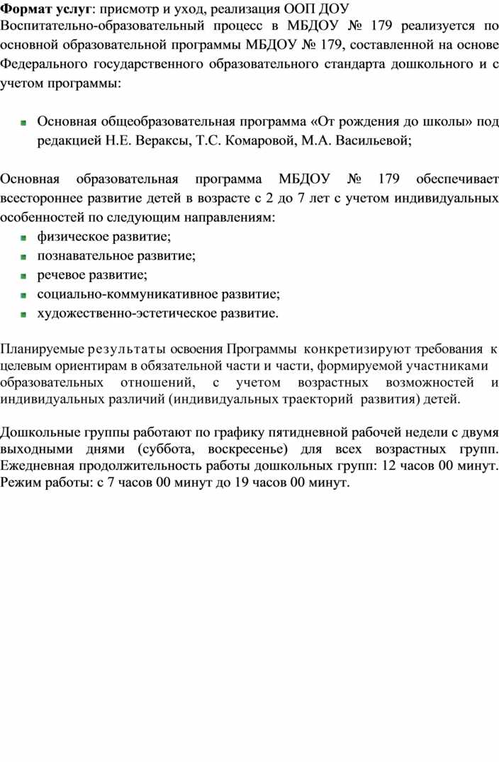 Формат услуг: присмотр и уход, реализация ООП ДОУ
