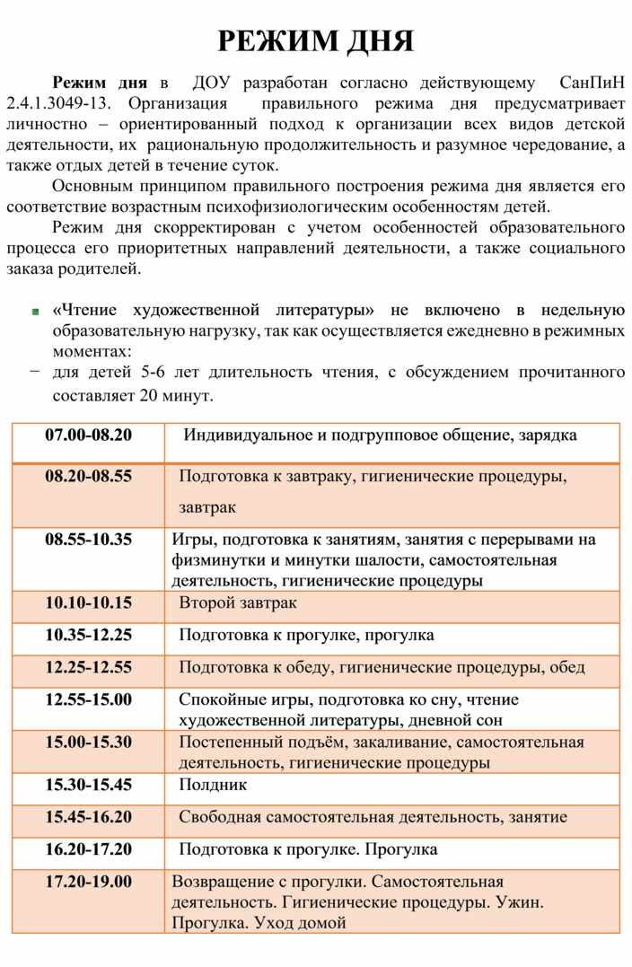 Спокойные игры, подготовка ко сну, чтение художественной литературы, дневной сон |