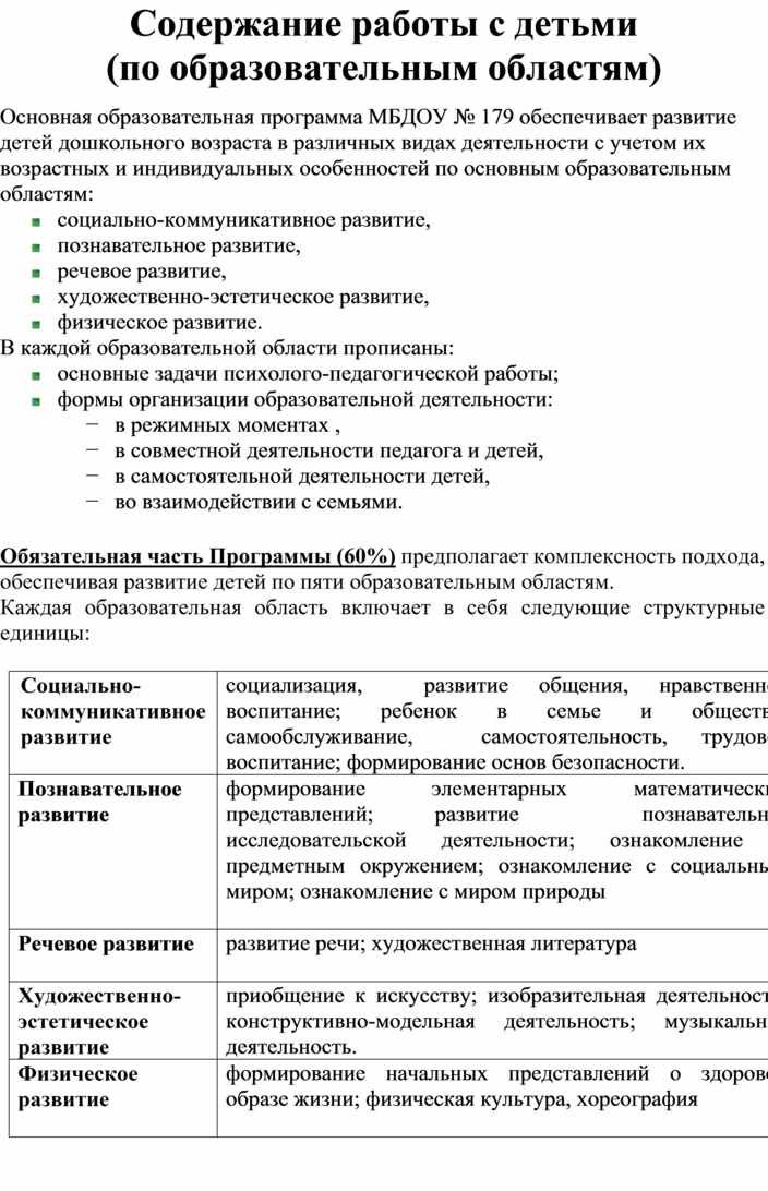 Основная образовательная программа МБДОУ № 179 обеспечивает всестороннее развитие детей в возрасте с 2 до 7 лет с учетом индивидуальных особенностей по следующим направлениям:
