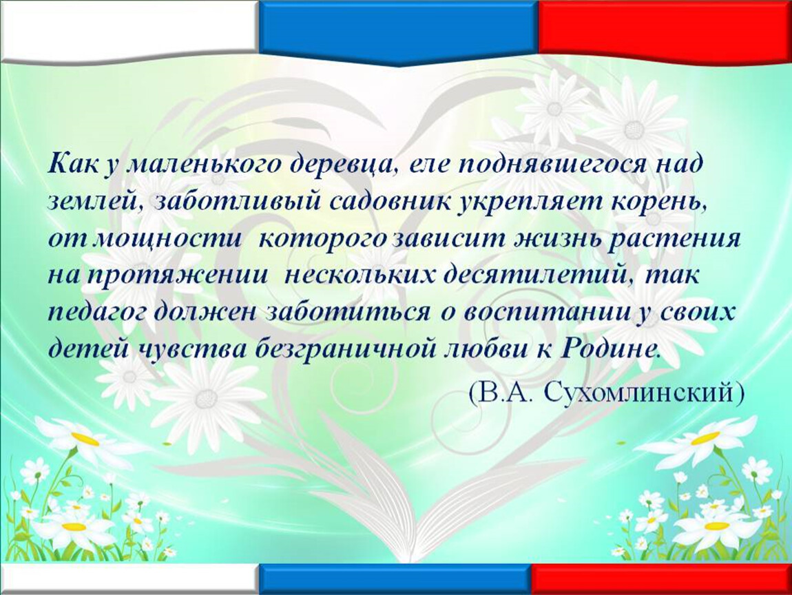 Никто не учит маленького человека: «Будь равнодушным к людям, ломай деревья, попирай красоту, выше всего ставь свое личное». Все дело в одной, в очень важной закономерности нравственно-патриотического воспитания. Если человека учат добру - учат умело, умно, настойчиво, требовательно, в результате будет добро. Учат злу (очень редко, но бывает и так), в результате будет зло. Не учат ни добру, ни злу - все равно будет зло, потому, что и человеком его надо воспитать». В.А. Сухомлинский