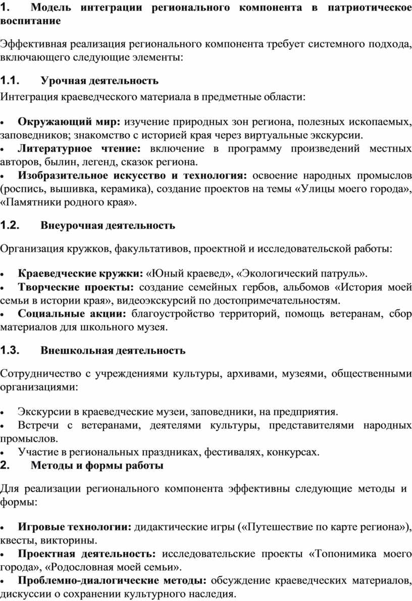 Эффективная реализация регионального компонента требует системного подхода, включающего следующие элементы: