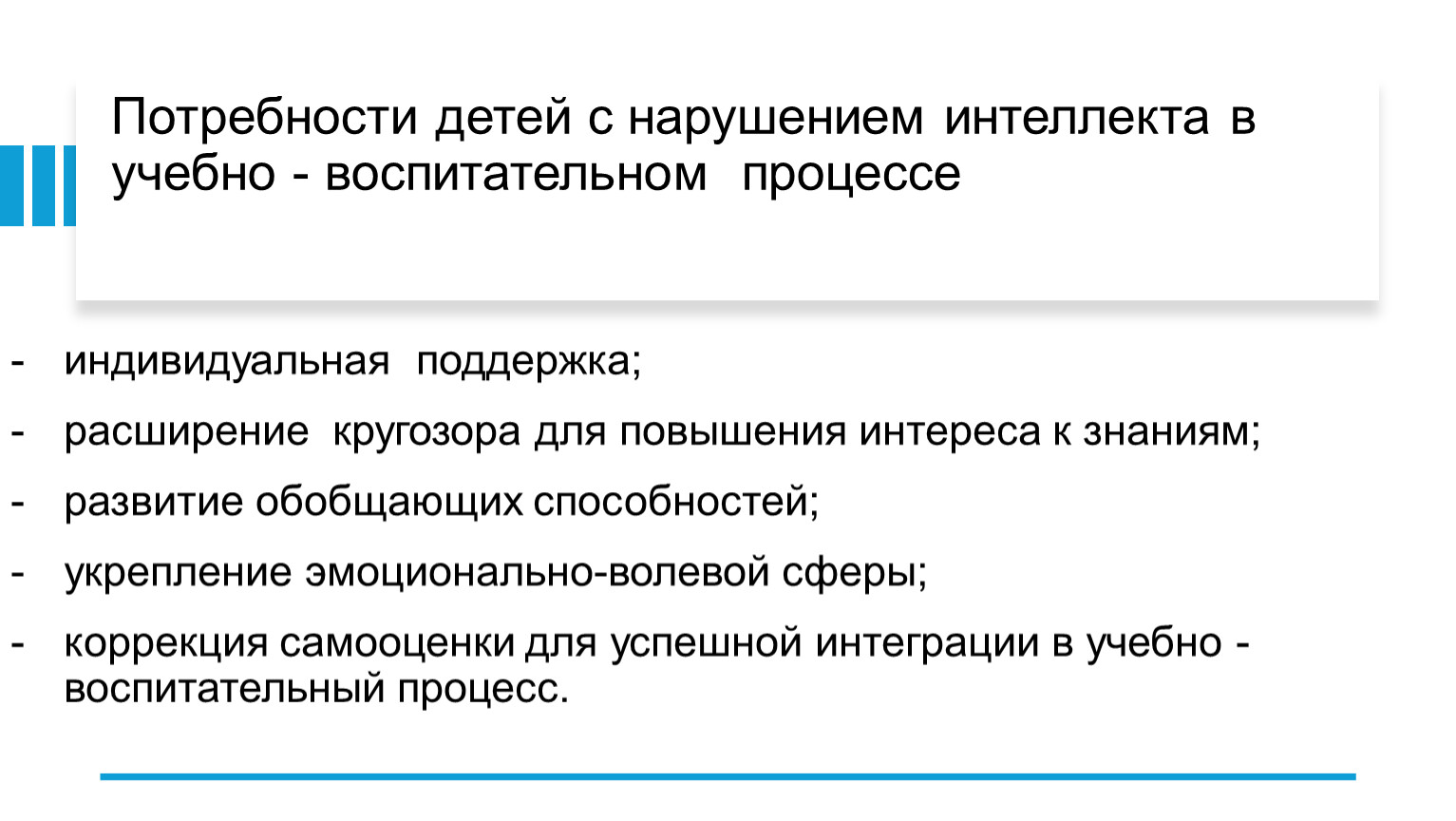 Потребности детей с нарушением интеллекта в учебно - воспитательном процессе