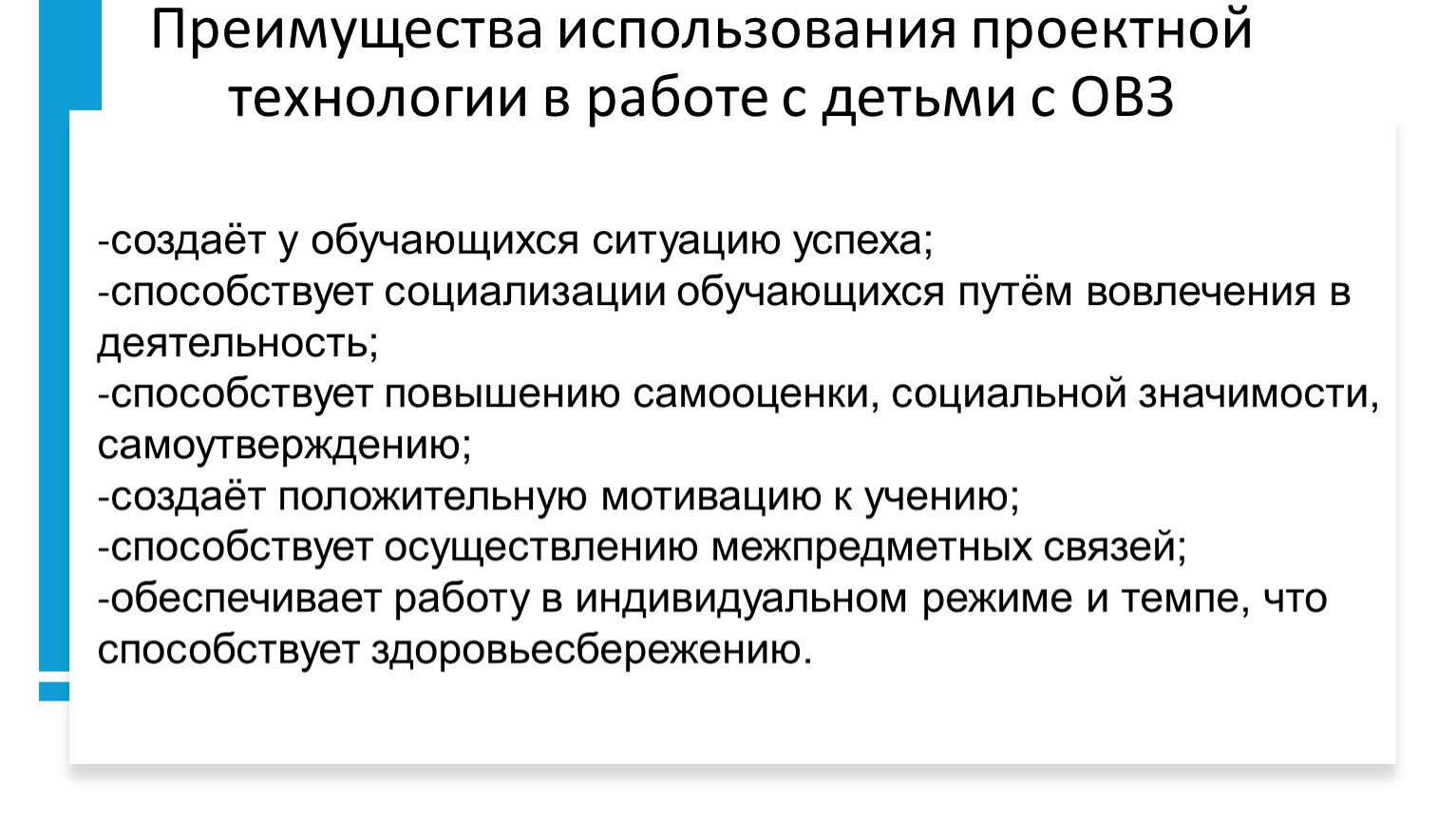 Преимущества использования проектной технологии в работе с детьми с ОВЗ