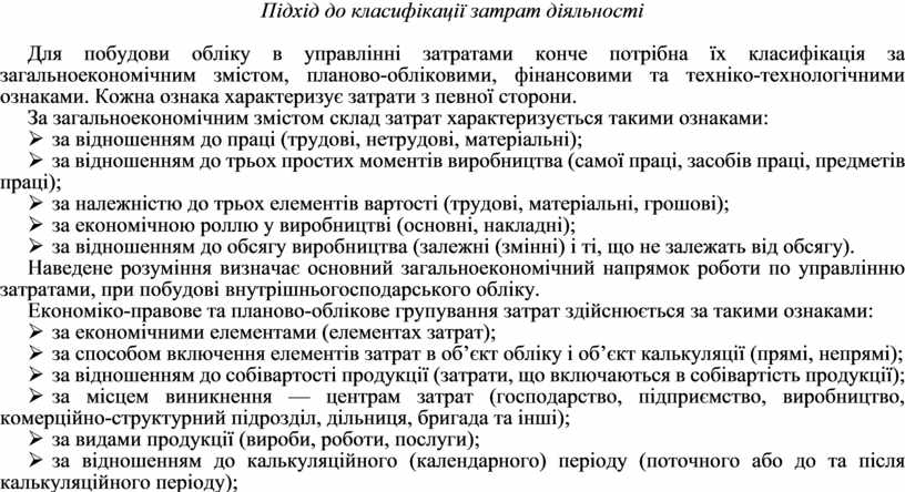 Підхід до класифікації затрат діяльності