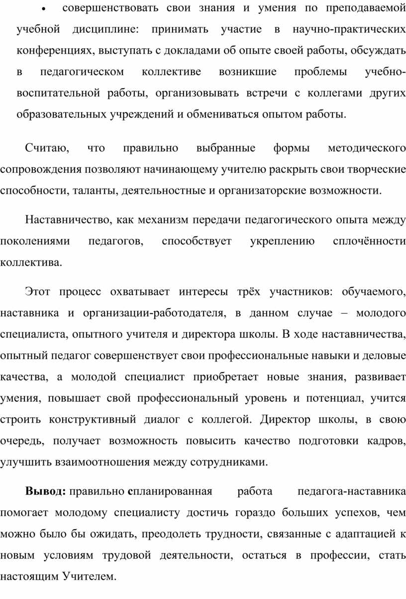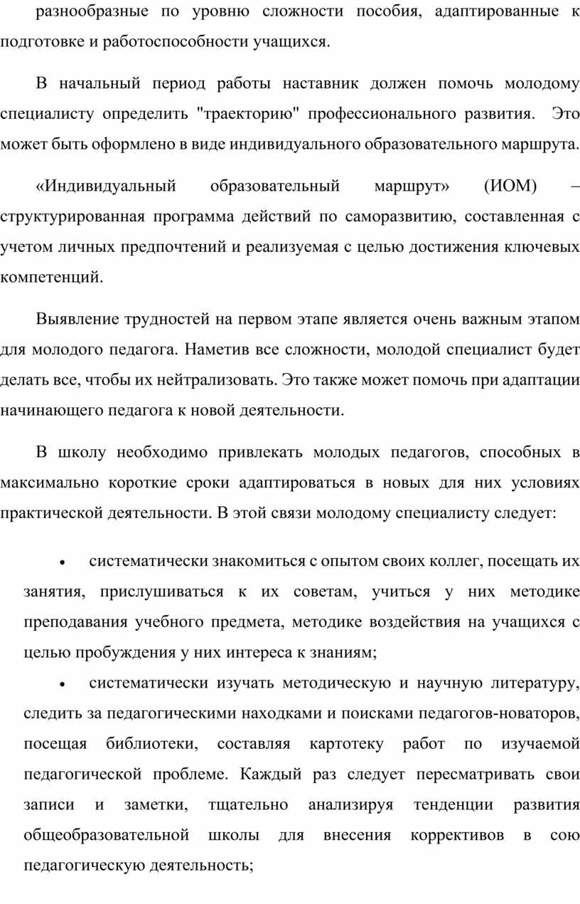 На начальном этапе педагогической деятельности крайне важно предоставить молодому специалисту исчерпывающую информацию о потенциальных трудностях, которые могут возникнуть в процессе работы. Это позволит ему быть подготовленным к возможным вызовам и более эффективно справляться с ними.