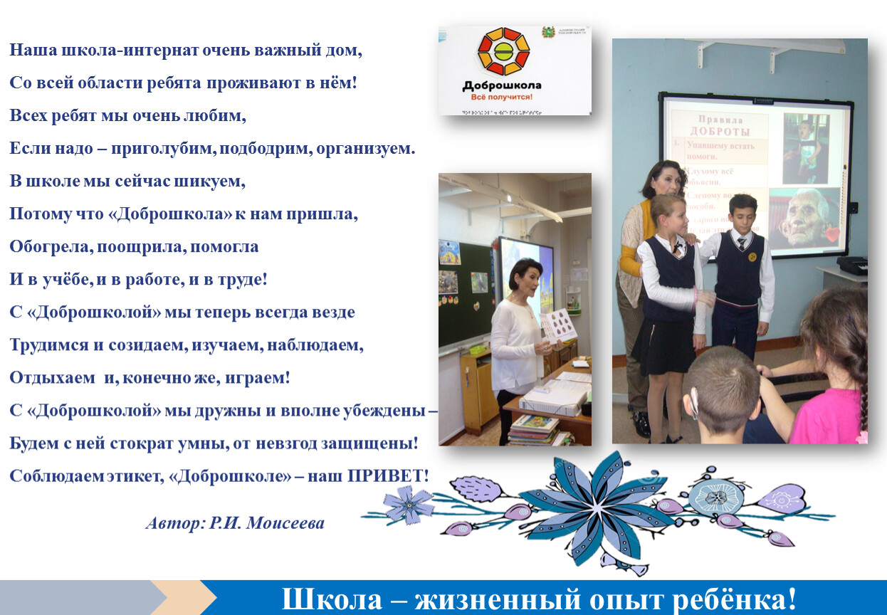 С «Доброшколой» мы дружны и вполне убеждены – Будем с ней стократ умны, от невзгод защищены! Соблюдаем этикет, «Доброшколе» – наш ПРИВЕТ!