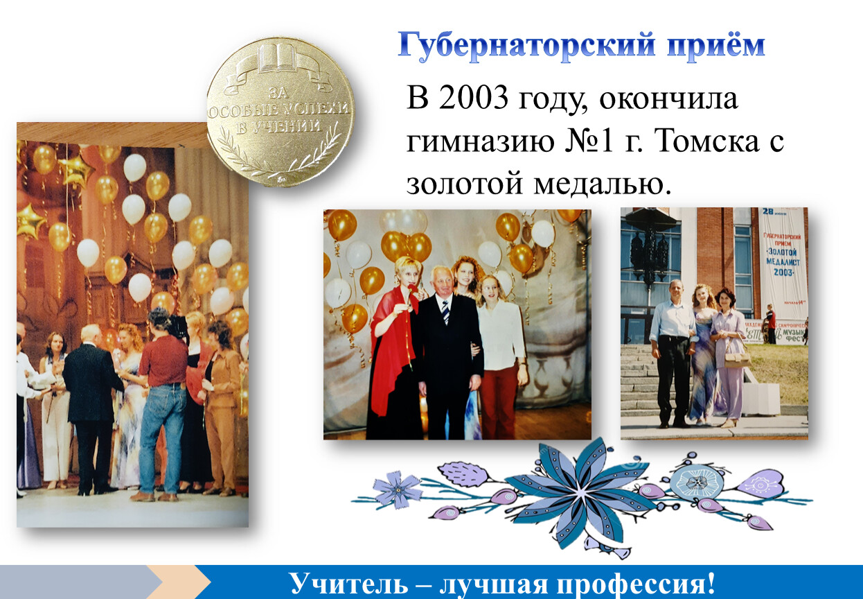 В 2003 году, окончила гимназию №1 г. Томска с золотой медалью.