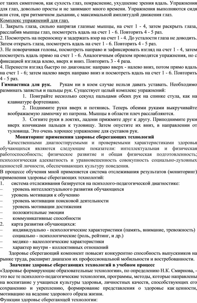 Функции здоровье сберегающей технологии: