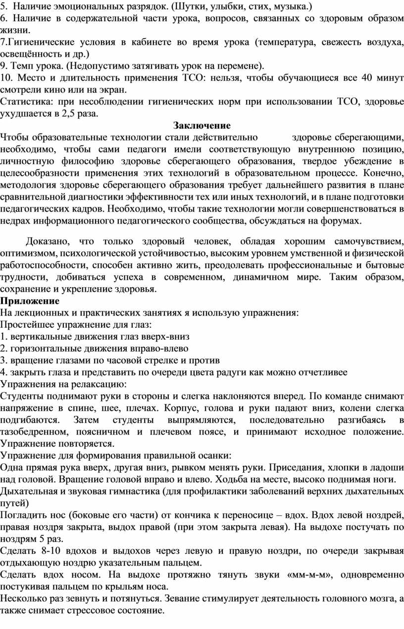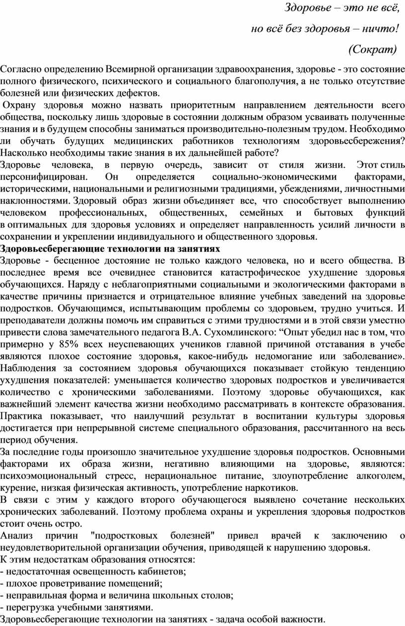 Значение здоровье сберегающих технологий в учебном процесс